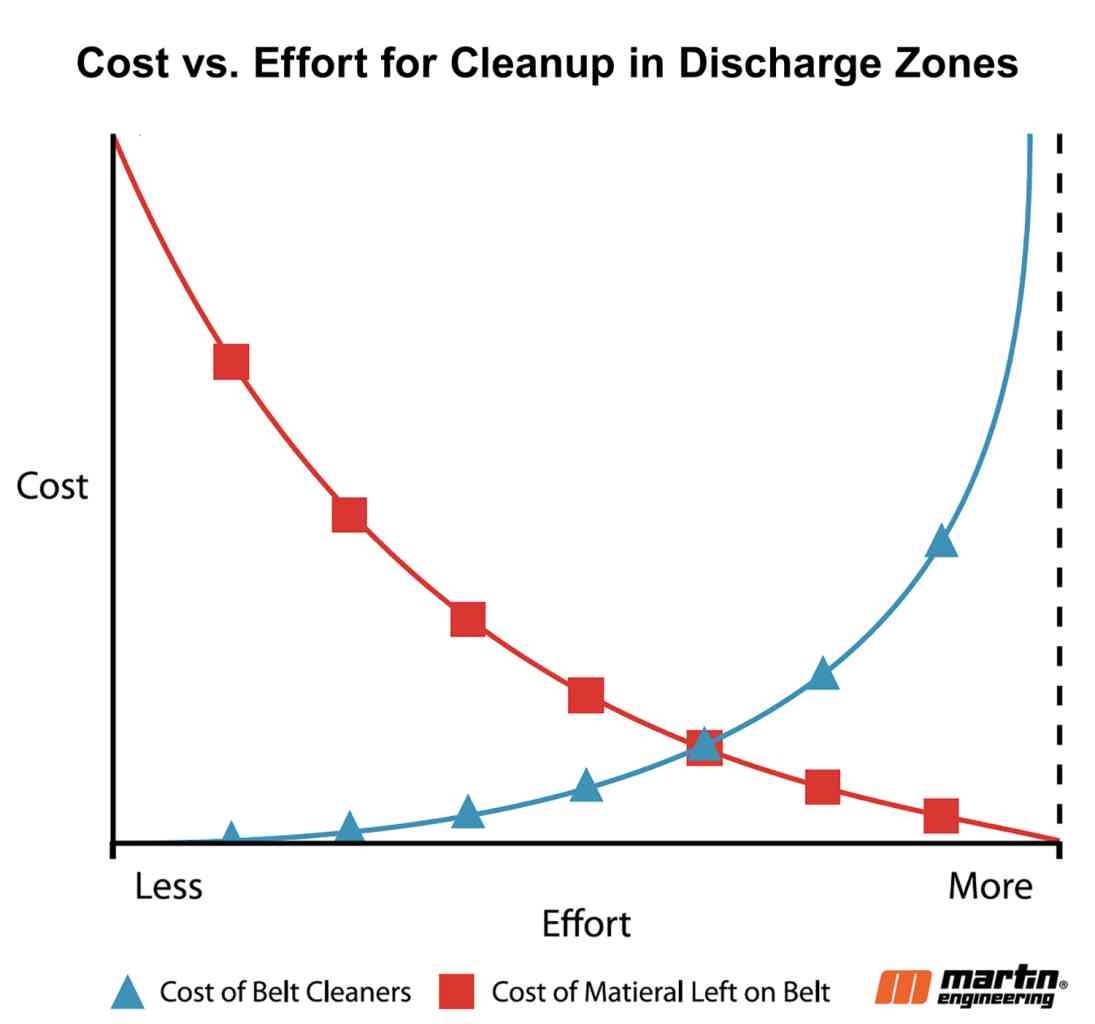 Figure 1 – Cleanup is always needed, but this graph shows that proper belt cleaning reduces the cost of operation.