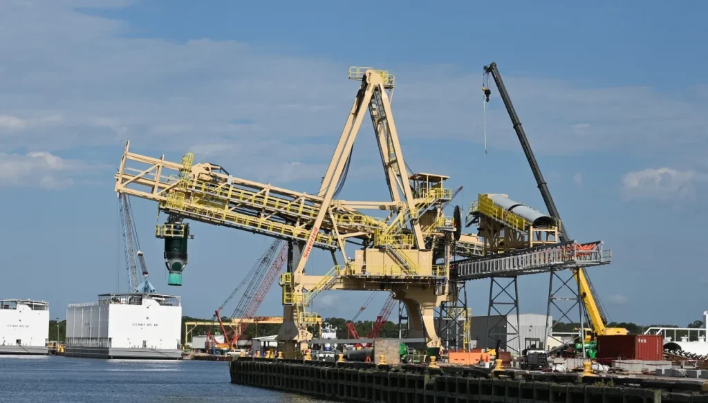 The ship loader will feature integrated catch pans and a comprehensive washdown system to ensure effective material containment, a critical environmental consideration when handling dusty commodities like petcoke.